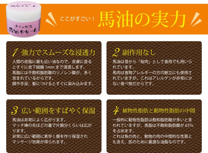 国産の最高級馬油を工場長が贅沢すぎるほど、たっぷりと使用しているため、潤いかたが半端じゃないです(≧∀≦)